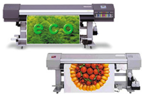 Outdoor advertisements such as hanging curtains, storefront sign displays, posters, store standing flags, stickers, etc. are produced custom-made making full use of our large format inkjet printing machines.
